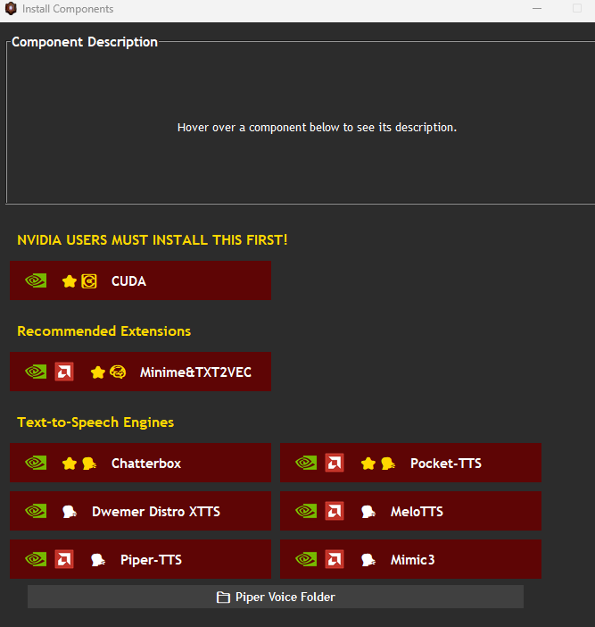 - If you have a powerful NVIDIA GPU download CUDA, Minime&TXT2VEC (select GPU) & Chatterbox