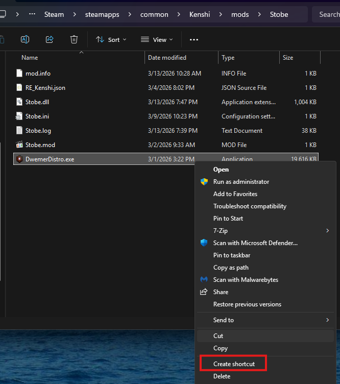 By having it as shortcut, whenever you download the latest STOBE it will always use the latest DwemerDistro.exe